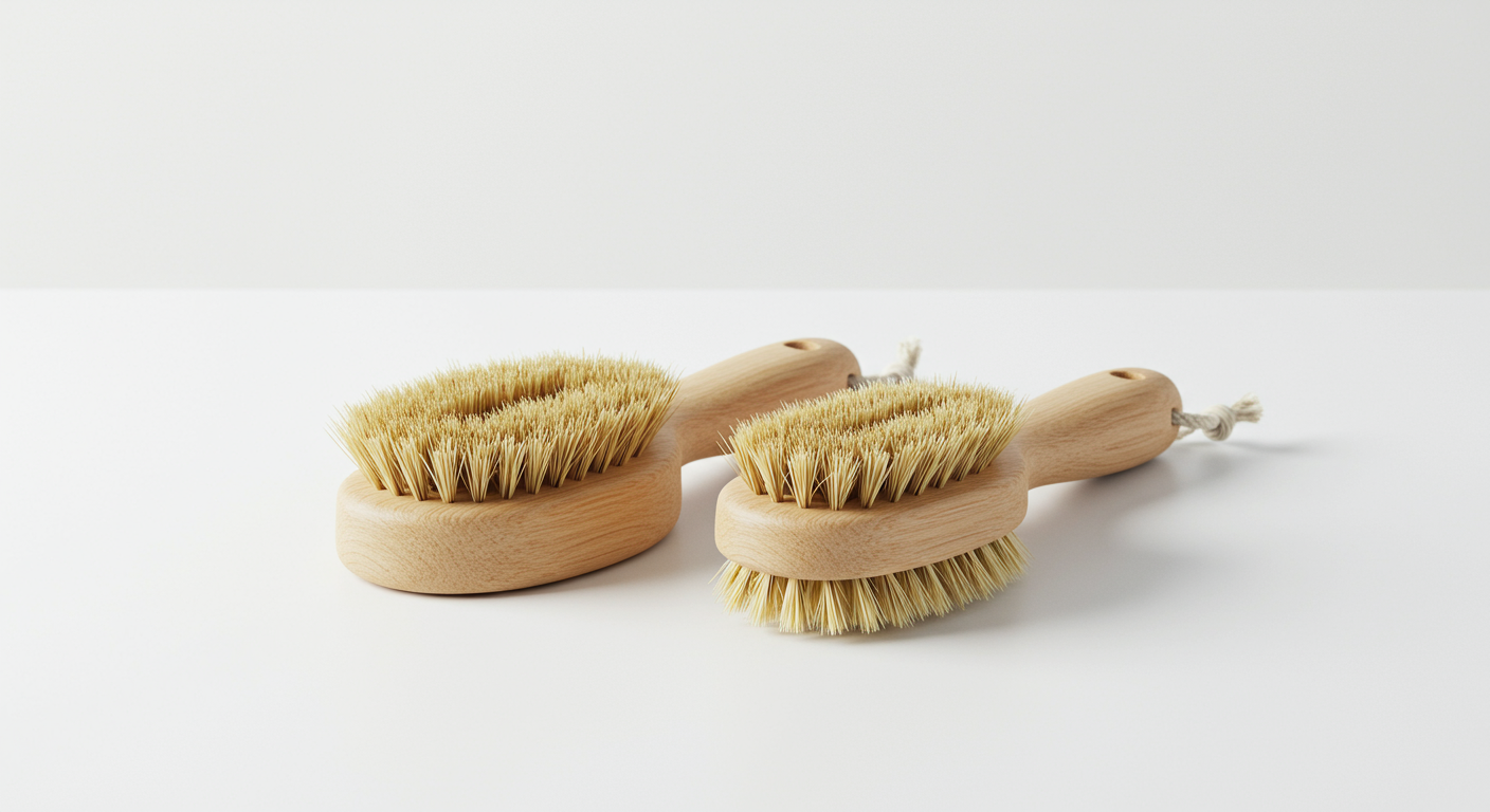 The bristles of this palm pot brush are made of medium-hard fibers, which are easy to touch corners and gaps, and can easily wipe off the dirt on the cast iron pot, but will not scratch the cookware. The natural bamboo handle is safe and healthy, and will not deform after one year of use.