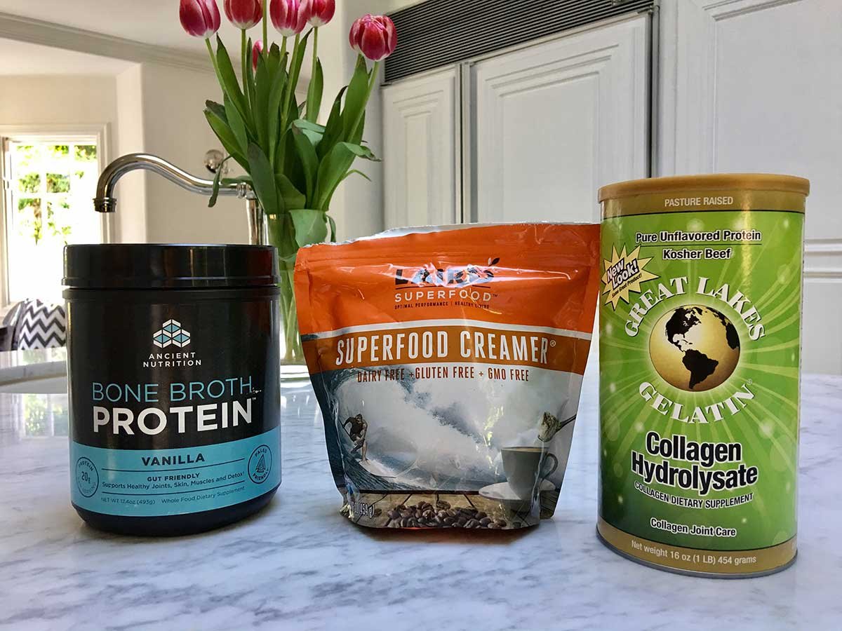 UPDATE: I received a huge response from this post and most of you wanted to know where you can buy the Laird’s creamer, the Collagen that I currently use and the bone broth, well here you are just click on the pictures: